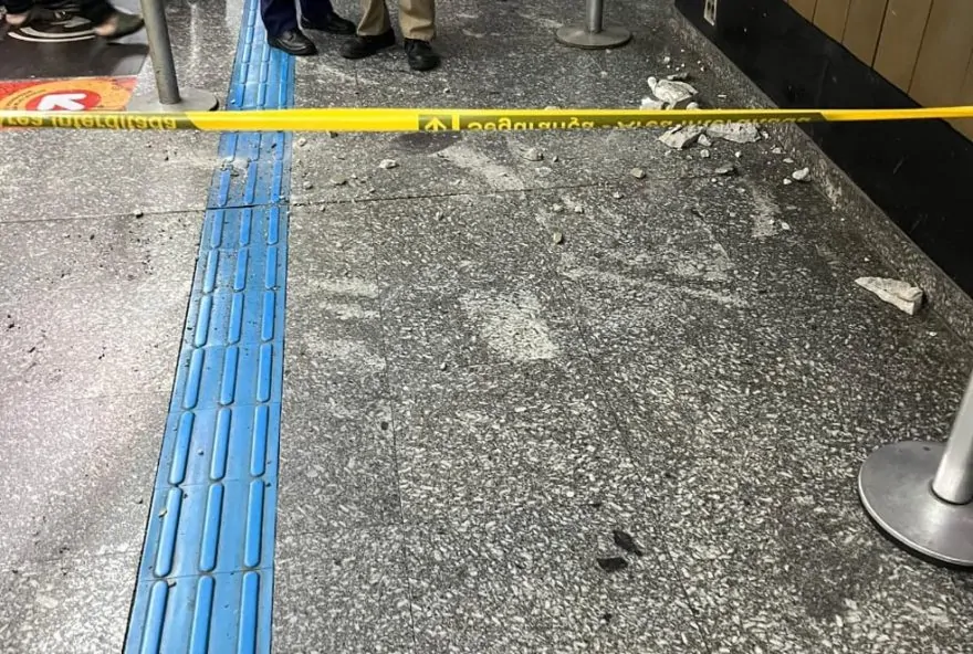 Equipes do Metrô foram acionadas imediatamente e constataram que houve o descolamento de pequenos pedaços do acabamento do teto, ressaltando que isso não afetou a estrutura da estação. Como medida de segurança, a área da plataforma onde ocorreu o incidente foi interditada para avaliação e reparos necessários.