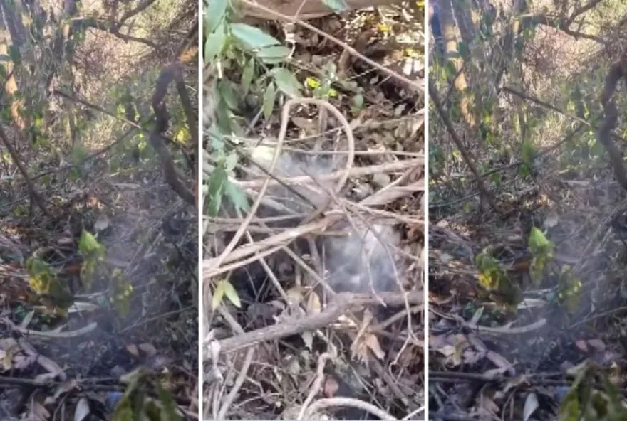 Vídeos aos quais a EPTV, afiliada da TV Globo, teve acesso mostram a fumaça saindo debaixo de árvores e vários galhos secos próximos.