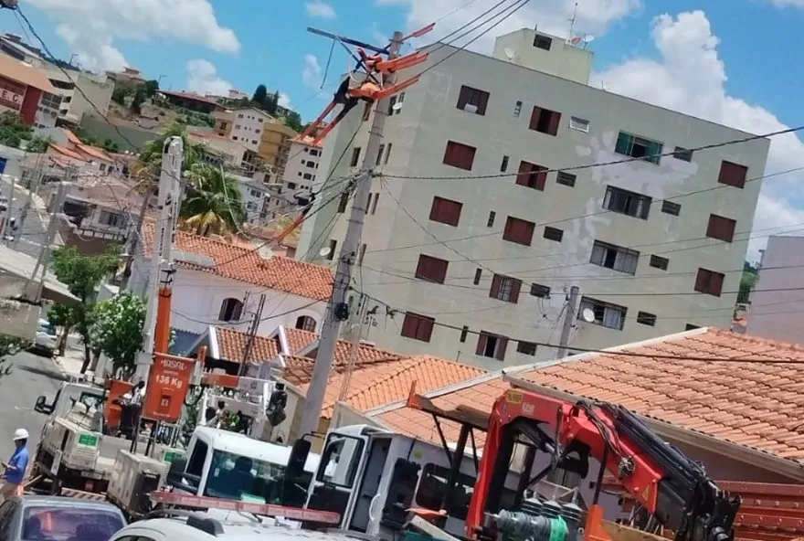 Um funcionário da CPFL sofre descarga elétrica após estouro de fiação em Serra Negra.