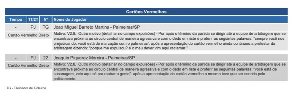 Expulsão de Piquerez e João Martins na súmula: repercussão no Palmeiras