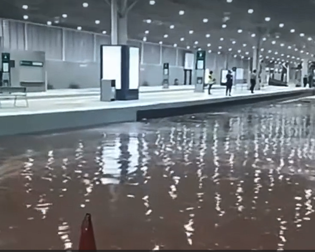 Problemas de drenagem expostos pelo temporal no Terminal Praça da Bíblia em Goiânia