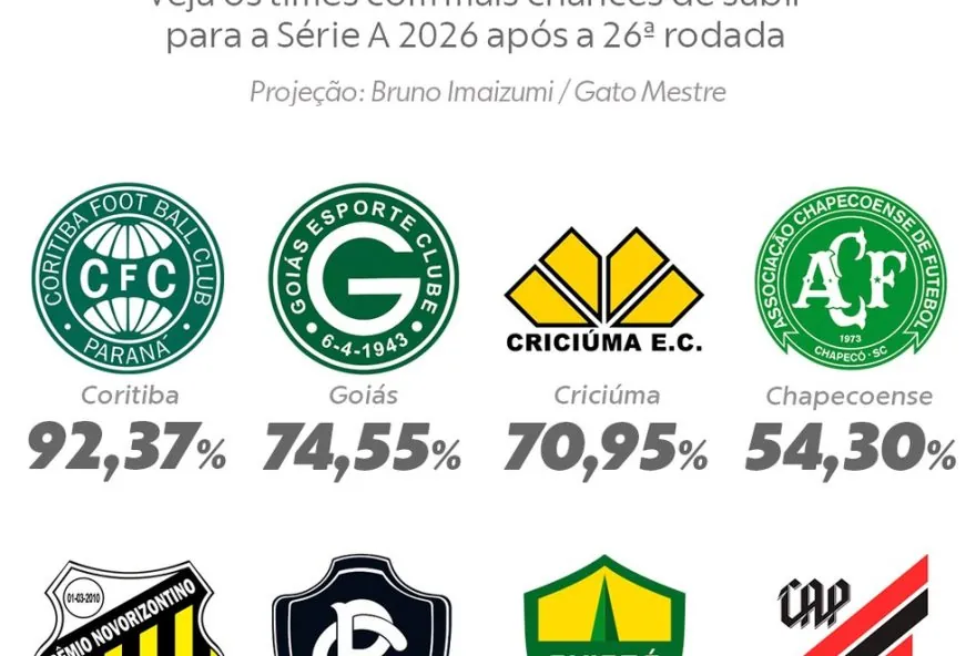 De acordo com as estatísticas do Gato Mestre, em parceria com o economista Bruno Imaizumi, o Goiás possui 74,55% de chances de conquistar o acesso para a Série A. Com uma margem significativa em relação aos concorrentes, o Verdão se destaca como um dos principais candidatos a garantir uma vaga na primeira divisão do brasileirão.