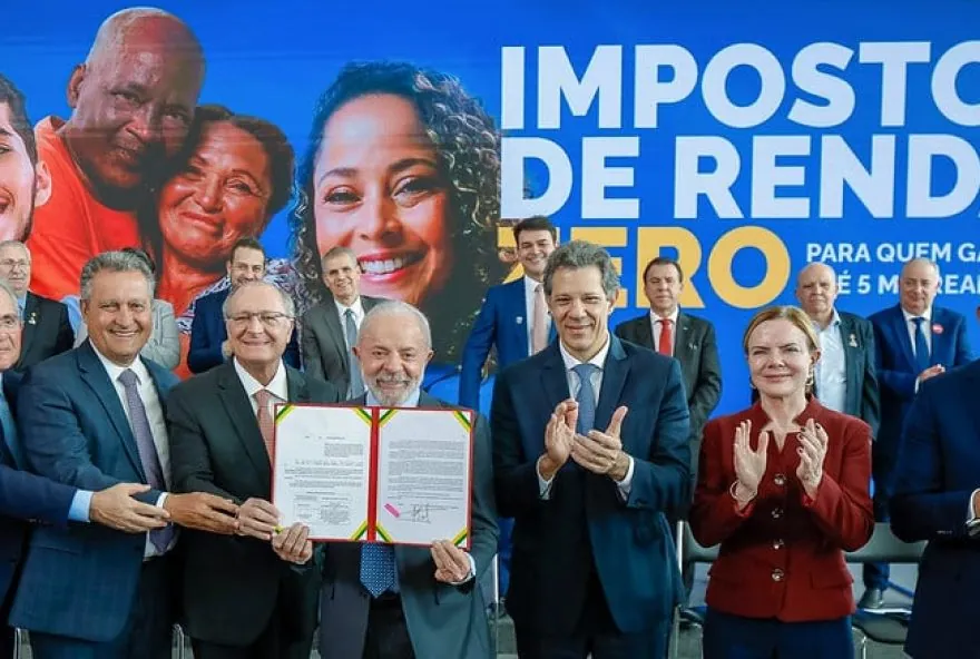 O presidente Luiz Inácio Lula da Silva publicou no Diário Oficial da União (DOU) a sanção integral da Lei 15.270, que isenta de Imposto de Renda os trabalhadores que recebem até R$ 5 mil por mês e estabelece descontos para rendas de até R$ 7.350 mensais. Segundo o governo, aproximadamente 15 milhões de brasileiros serão beneficiados e deixarão de pagar Imposto de Renda. A redução parcial dos valores a serem pagos ao Fisco será aplicada para aqueles que ganham até R$ 7.350 mensais, excluindo os contribuintes com rendimentos superiores. Para compensar a perda de arrecadação decorrente dos benefícios, haverá aumento na taxação de altas rendas a partir de R$ 600 mil anuais. A proposta de isenção do IR foi apresentada pelo governo em março e aprovada em outubro pela Câmara dos Deputados e em seguida pelo Senado Federal, de forma unânime. A ampliação das faixas de isenção entrará em vigor a partir de janeiro de 2026.