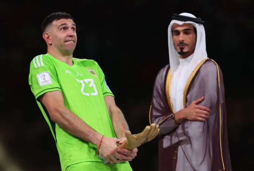 A Copa do Mundo do Catar foi um grande divisor de águas na vida de Dibu Martínez. Ele foi decisivo durante as partidas e ainda pegou pênalti nas cobranças decisivas para o título da Argentina sobre a França. Levou o troféu de melhor goleiro do torneio e comemorou com um gesto obsceno com o troféu. A atitude trouxe críticas do presidente da Uefa, Aleksander Ceferin, que classificou o ato como “nojento”.