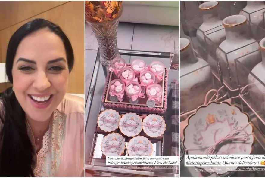 lembrancinhas preparadas para receber a filha e elogiou o capricho nos detalhes,