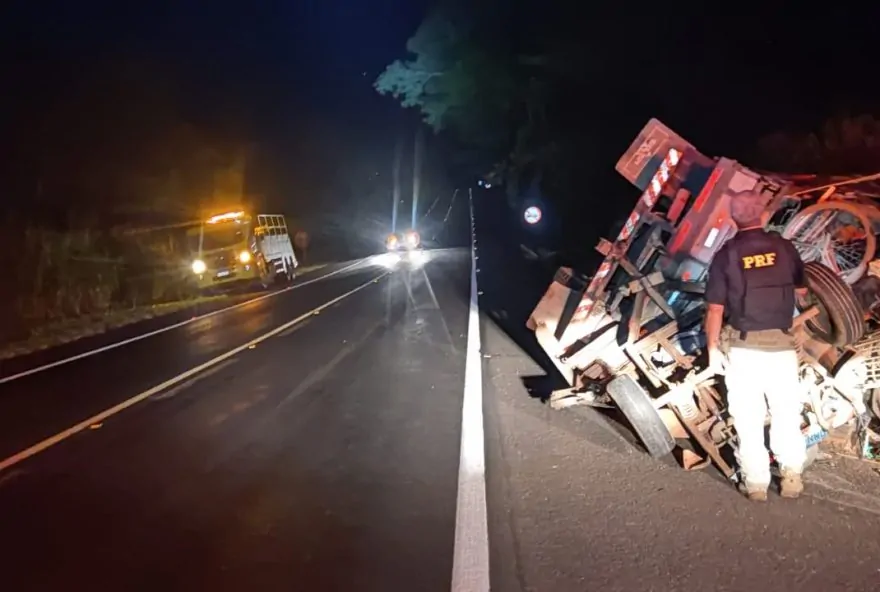 Um caminhão de médio porte protagonizou um grave acidente no final da noite desta quinta-feira, 28, na BR-153, município de Jaraguá, região central de Goiás. O veículo, um Ford F4000 ano 1982, transportava quatro pessoas e pertences de uma mudança da cidade de Jaraguá, estado de Goiás, para Aliança, no Tocantins, quando o motorista perdeu o controle da direção, resultando no capotamento.