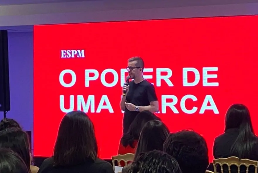 1 de 2 Head de Marketing e Comunicação da Supergasbras, Estevão Paiva, ministra palestra ‘Branded Content – Amplificando a Voz das Marcas’ — Foto: Tatiane Barbosa/G1 Goiás