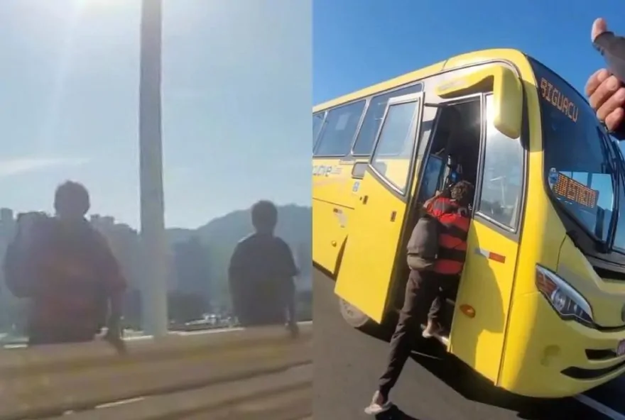 Guarda para ônibus e manda pedestres que atravessavam ponte de Florianópolis ‘pelo lado de fora’ embarcarem; VÍDEO