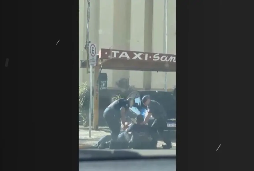 Em outro vídeo, dá para ver a mulher sendo derrubada por um dos agentes,