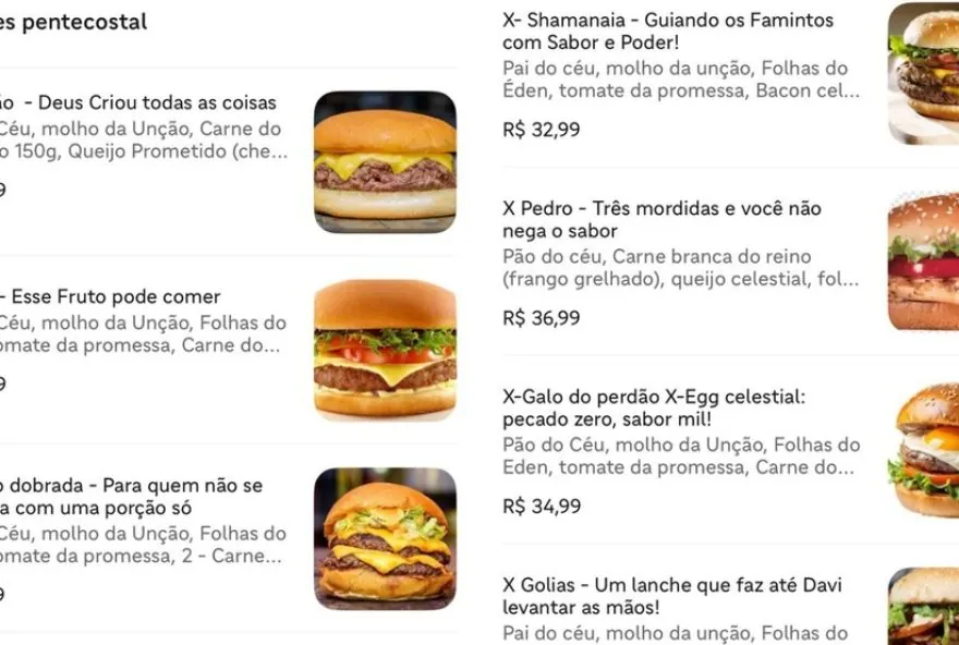 Uma hamburgueria com temática evangélica viralizou nas redes sociais e tem chamado a atenção em Cascavel, no oeste do Paraná. O local, conhecido como “Pós Culto”, oferece lanches com nomes bíblicos, como “X-Coluna de Fogo” e “DE-Unção”, não vende bebidas alcoólicas e mantém a trilha sonora apenas com louvores cristãos.