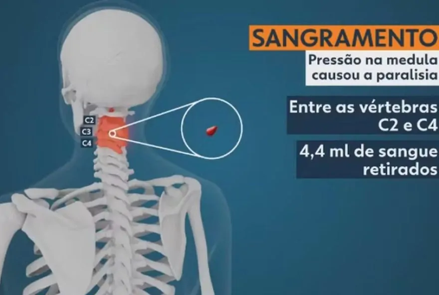 O neurologista Gabriel Bortoli, que acompanha o caso do jovem, explicou que a condição se trata de um sangramento entre a coluna e a medula espinhal. Os movimentos foram afetados porque o líquido pressionou o conjunto de nervos que envia as informações do cérebro ao restante do corpo.