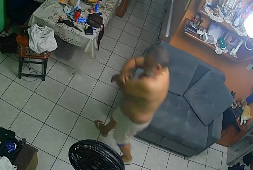 segurança instalada na sala da residência. Além das agressões, as imagens