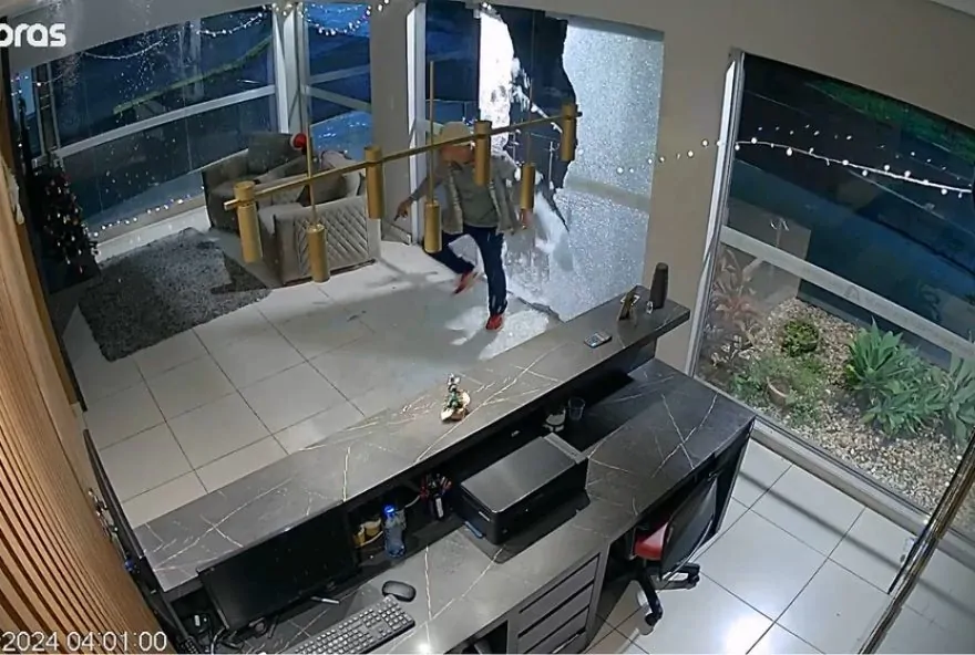 O circuito de câmeras de segurança do imóvel gravou toda a ação criminosa, que durou aproximadamente 30 segundos. O vídeo mostra um homem que vestia um boné branco, camiseta e um abrigo cinza quebrando a porta do estabelecimento com o auxílio de uma chave de fenda, às 4h.