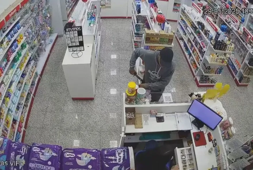 VÍDEO: homem assalta farmácia com facão em Taguatinga, no DF