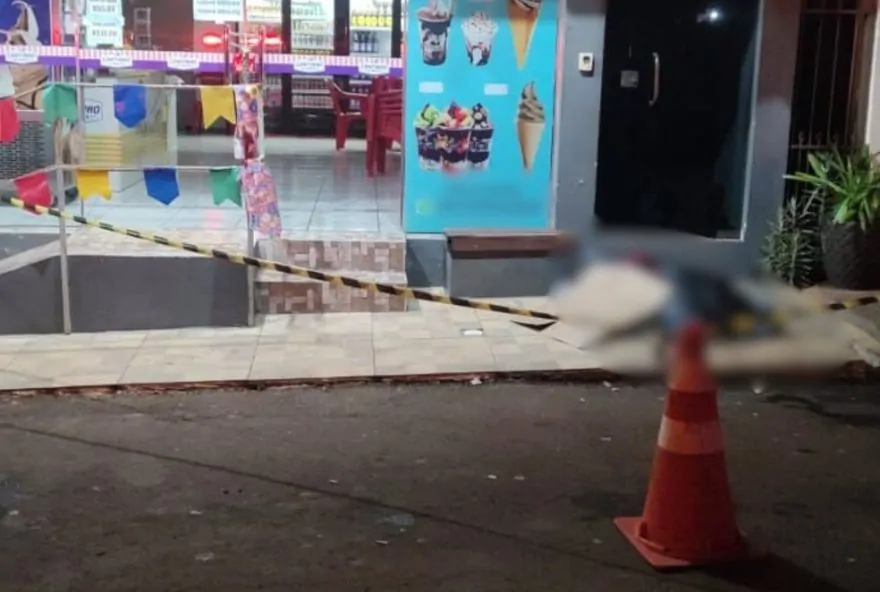 domingo (22), em frente a um estabelecimento comercial no centro de Santo