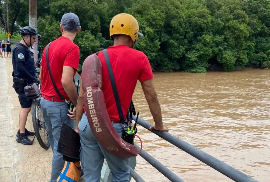 O Corpo de Bombeiros de Piracicaba (SP) realiza buscas para tentar localizar um homem que desapareceu no Rio Piracicaba após pular da ponte estaiada na tarde deste domingo (26).