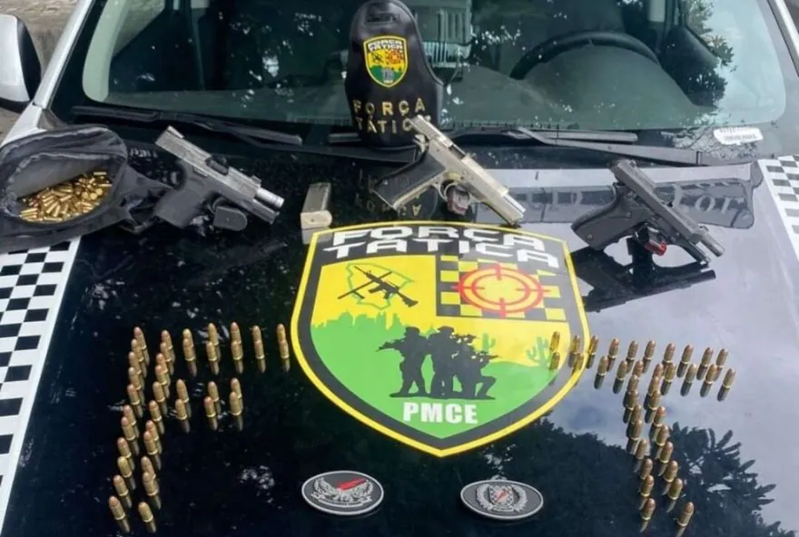 Três armas de fogo e 160 munições foram apreendidas com um homem de 18 anos, que foi preso na manhã deste domingo (2), em Fortaleza. A prisão foi no bairro Mondubim após policiais receberem denúncia sobre possível confronto armado na rua Pirineus, próximo à travessa Valéria.