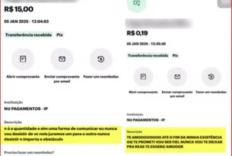 Segundo a Polícia Militar (PM), o homem, cuja idade não foi divulgada, utilizou transferências via Pix para se comunicar com a mulher, uma vez que estava bloqueado em todas as redes sociais. Além das mensagens bancárias, ele também mandou flores e um cartão para a família dela.