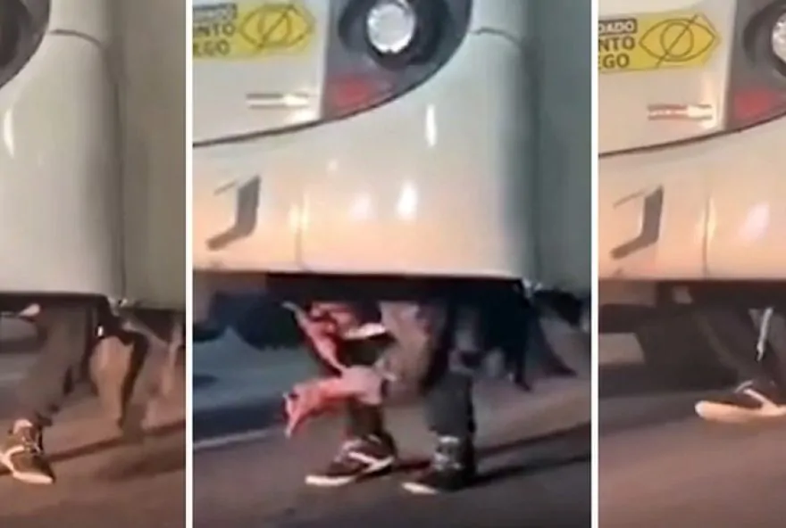 Um indivíduo foi flagrado viajando com as pernas penduradas na parte inferior de um ônibus no Rio de Janeiro, conforme mostra um vídeo que circula nas redes sociais. No registro, é possível ver o homem descendo os pés para fora do veículo em um ponto de parada, chamando a atenção das pessoas que o observavam na rua e retornando para dentro do coletivo. A situação, no mínimo inusitada, levantou questionamentos sobre a segurança do transporte público na cidade.