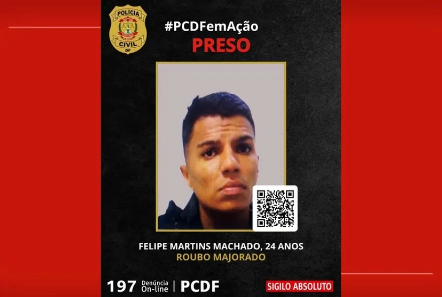De acordo com a PCDF, os crimes ocorreram entre 2023 e 2025. O homem foi indiciado pelos crimes de roubo majorado e furto qualificado. As penas somadas podem chegar a até 18 anos de reclusão.