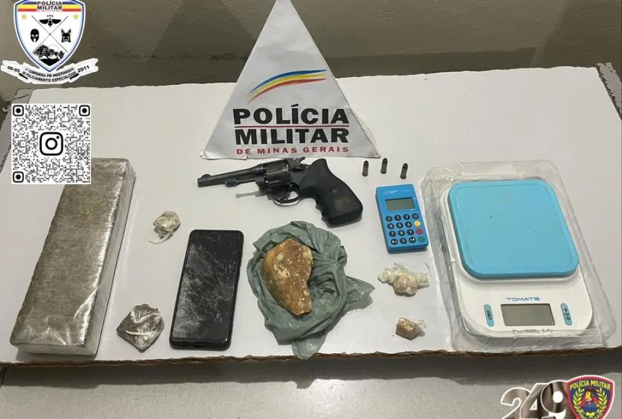 Segundo a PM, uma bolsa contendo porções de maconha e crack foi encontrada na residência. Anotações relacionadas ao tráfico, uma balança e uma máquina de cartão também foram recolhidas. Cães farejadores encontraram mais drogas e uma arma dentro de um carro. De acordo com a PM, o suspeito das denúncias resistiu e chegou a agredir um policial durante a abordagem. Ele assumiu ser dono do material encontrado com exceção da arma, alegando que o automóvel onde ela estava havia sido emprestado para outra pessoa.