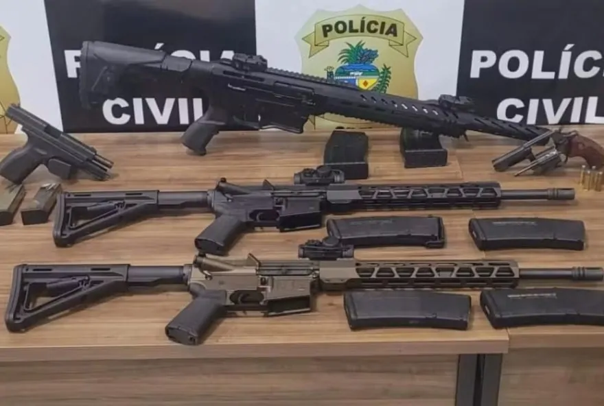 A polícia realizou também uma busca a outro endereço ligado ao suspeito em Motividiu. Os agentes encontraram no local outras duas armas, sendo elas um outro fuzil calibre 566 e um revólver calibre 38 SPL, de uso proibido, além de várias munições do mesmo calibre.