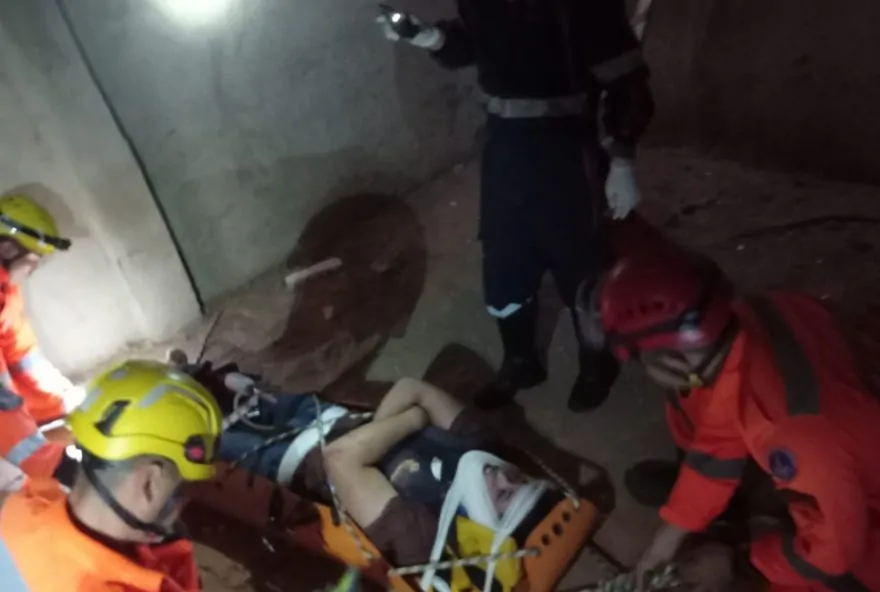 Homem é socorrido após cair no subsolo de galpão, a 4 metros de profundidade, em Montes Claros