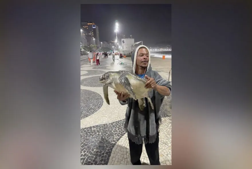 Um homem foi avistado na Praia de Copacabana, na Zona Sul do Rio, carregando uma tartaruga marinha no último domingo (19). Testemunhas relatam que ele capturou o animal no mar e saiu andando com ele nas mãos. Esse incidente ocorreu cerca de dez meses depois de uma situação semelhante ter sido registrada na Praia do Flamengo, onde um homem foi flagrado transportando uma tartaruga marinha. A ação do indivíduo chamou a atenção e acionou a Polícia Militar, que fez buscas pela região, mas não conseguiu localizar nem o homem, nem o animal.