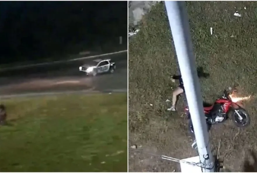 VÍDEO: Homem tenta fugir da polícia, mas perde o controle do veículo, cai e é