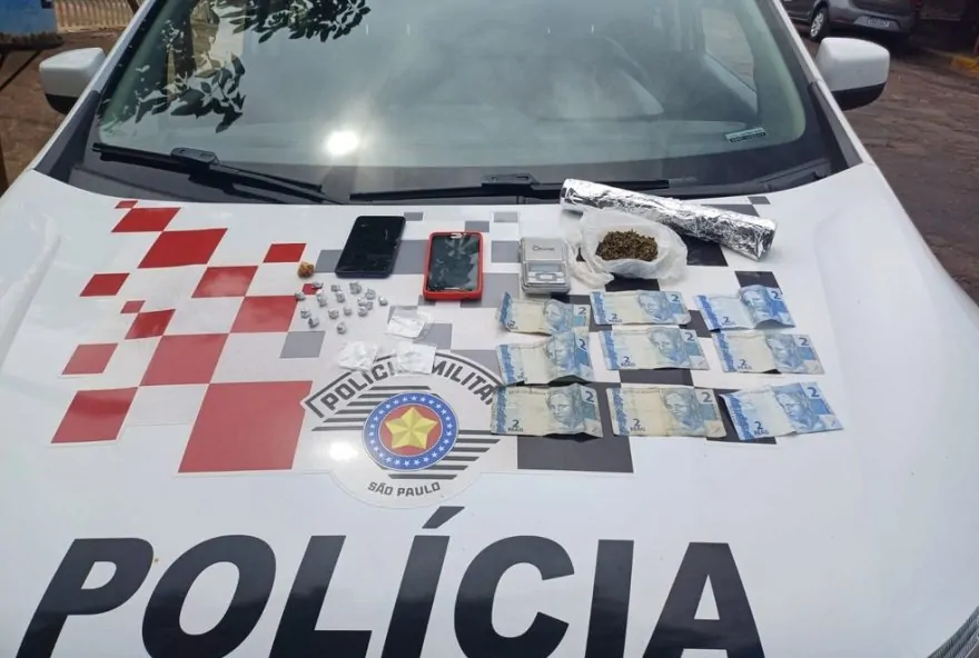 Durante a revista, nada de ilícito foi encontrado, porém, de acordo com a polícia, na vistoria residencial, foram localizados 21 gramas de maconha, 18 porções de crack, três sachês de cocaína e uma balança de precisão. Além disso, também foram apreendidos dois celulares, papel alumínio usado para envolver as drogas e R$ 18 em dinheiro.