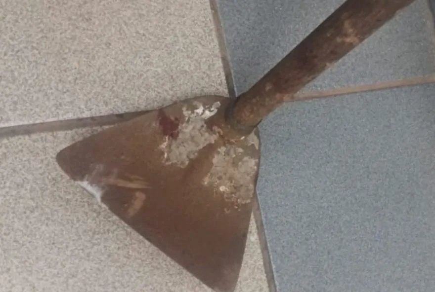 No boletim de ocorrência, no qual o DE teve acesso, o irmão informou que o suspeito estava bêbado, quebrando as coisas de casa, e acabou golpeando a mãe com a enxada, fazendo um corte na testa dela.
