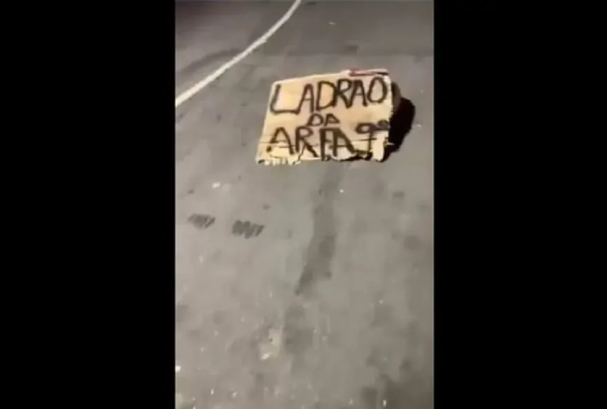 Em frente ao cadáver, deixado no meio da via, bandidos que cometeram o crime ainda colocaram uma placa de papelão escrito “ladrão da área”.
