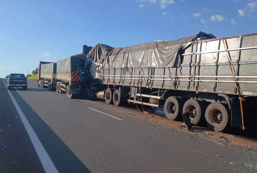 Homem morre após colisão de semirreboque com traseira de carreta bitrem, em