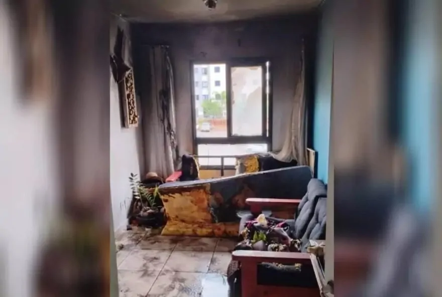 O incêndio ocorreu em apenas um cômodo do apartamento, conforme mostra a imagem do Jornal da Cidade de Bauru.