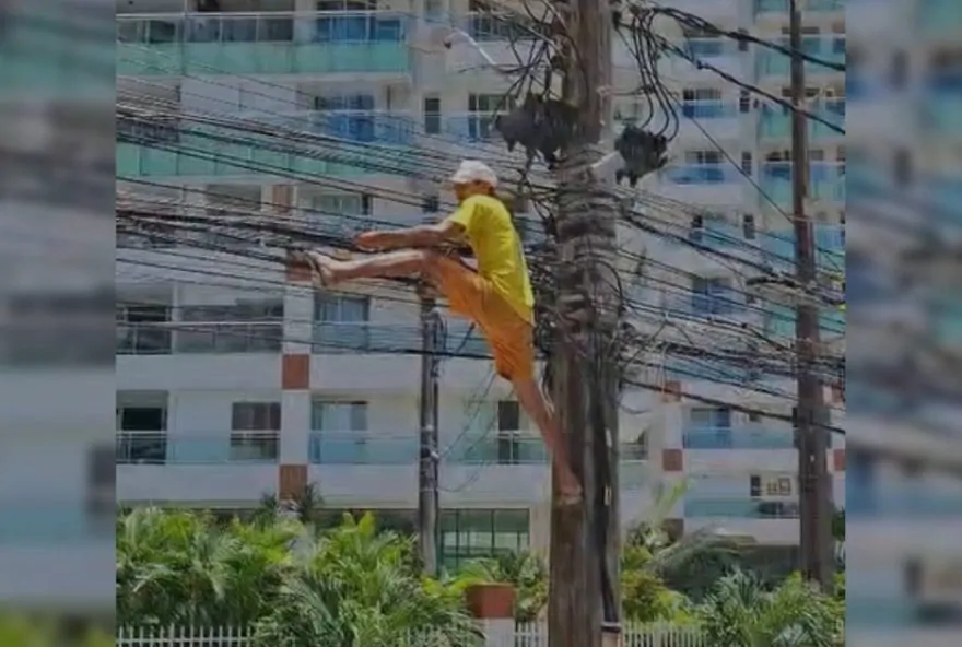 O flagrante aconteceu no bairro Dionísio Torres e chamou a atenção de quem passava pelo local. O homem parecia não se importar com o risco da situação, se equilibrando entre o poste e os cabos elétricos. Em determinado momento, uma pessoa que não aparece nas filmagens alerta o suspeito sobre a possível chegada da polícia, mas o homem parece não se intimidar.