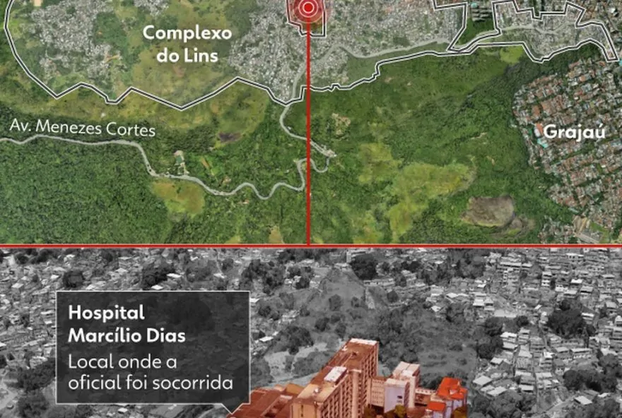 O Hospital Naval Marcílio Dias está localizado no bairro do Lins de Vasconcelos, na Zona Norte do Rio. A região do entorno conta com 16 comunidades, que formam o Complexo do Lins. Na terça-feira (10), a capitão de Mar e Guerra Gisele Mendes de Souza e Mello levou um tiro na cabeça e morreu dentro da unidade de saúde.