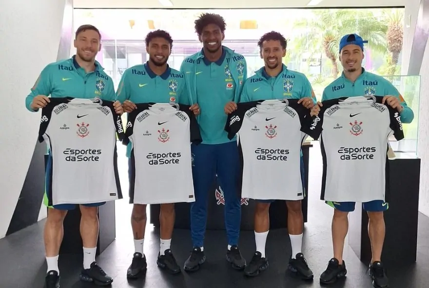 O goleiro do Timão, Hugo Souza, emocionou os fãs ao presentear os jogadores da Seleção Brasileira que já passaram pelo Corinthians. Em um gesto de carinho e gratidão, ele entregou camisas do clube para Carlos Eduardo, Marquinhos, Ederson e Gabriel Martinelli. Os atletas, que em algum momento de suas carreiras defenderam as cores do Corinthians, foram surpreendidos com o gesto gentil de Souza.