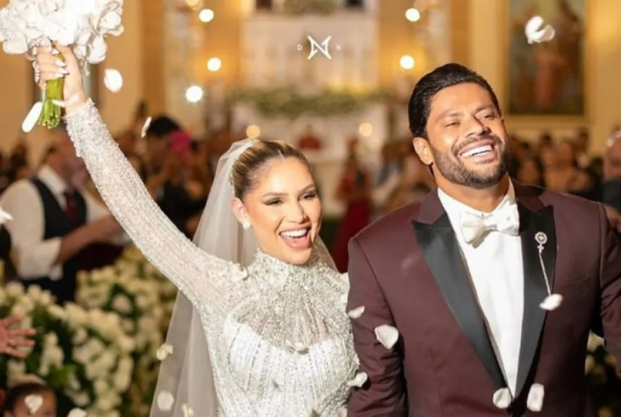 Hulk Paraíba, jogador do Atlético Mineiro, celebrou sua união com Camila Ângelo em uma cerimônia religiosa realizada em Campina Grande na última sexta-feira (3/1). O casal, que já havia oficializado a união civilmente em 2020, está junto desde 2019 e são pais de Zaya, de 2 anos, e Aisha, de apenas 6 meses de idade.