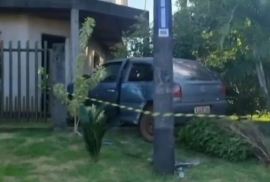 O carro do casal foi levado pela própria família para o pátio da cidade, pois o município não possui guincho. Carro bateu contra o muro de uma casa em Roncador.