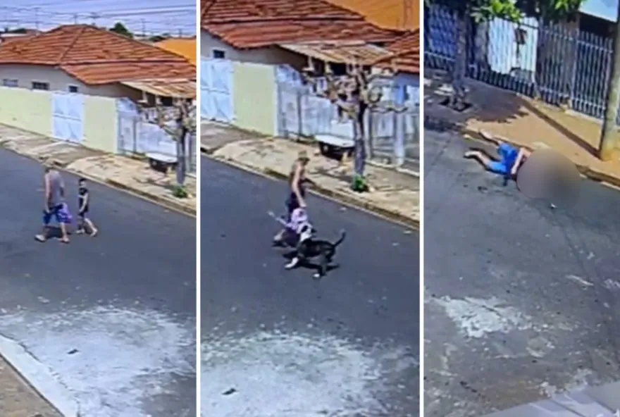 Câmeras de segurança registraram o momento em que o pitbull avançou em direção ao idoso, que tentou usar a mochila da neta como proteção. Apesar disso, ele foi derrubado, e a menina conseguiu escapar subindo em um banco, enquanto o animal parou apenas com a chegada da dona.