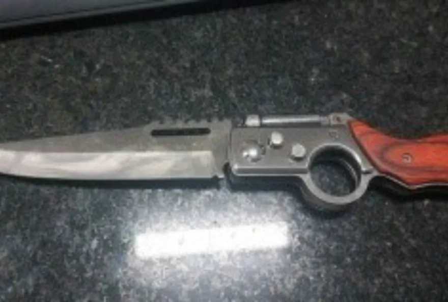 Canivete usado pelo filho foi apreendido em Patos de Minas — Foto: Polícia Militar/Divulgação