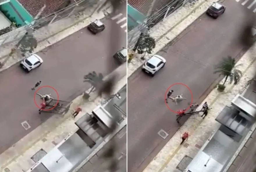 O caso ocorreu no começo da tarde desta segunda-feira (23), na Rua Xavantes, no bairro Tupi. Em imagens, obtidas pelo DE, é possível ver os moradores retirando o portão de cima do homem.
