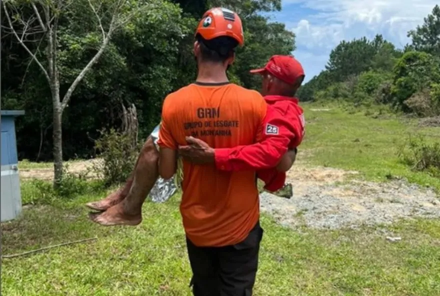 As buscas pelo homem mobilizaram os Bombeiros Voluntários e o Grupo de Resgate em Montanha (GRM) de Joinville.