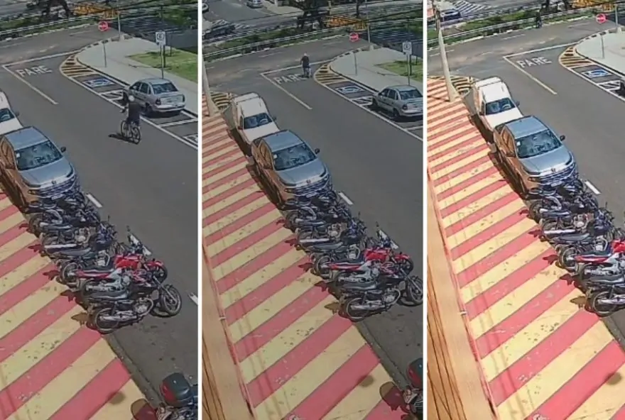 Nas imagens, é possível notar que o ciclista descia a via em alta velocidade, quando entrou na avenida, que é uma das mais movimentadas da cidade, e foi parar direto no córrego. Não havia trânsito no momento.