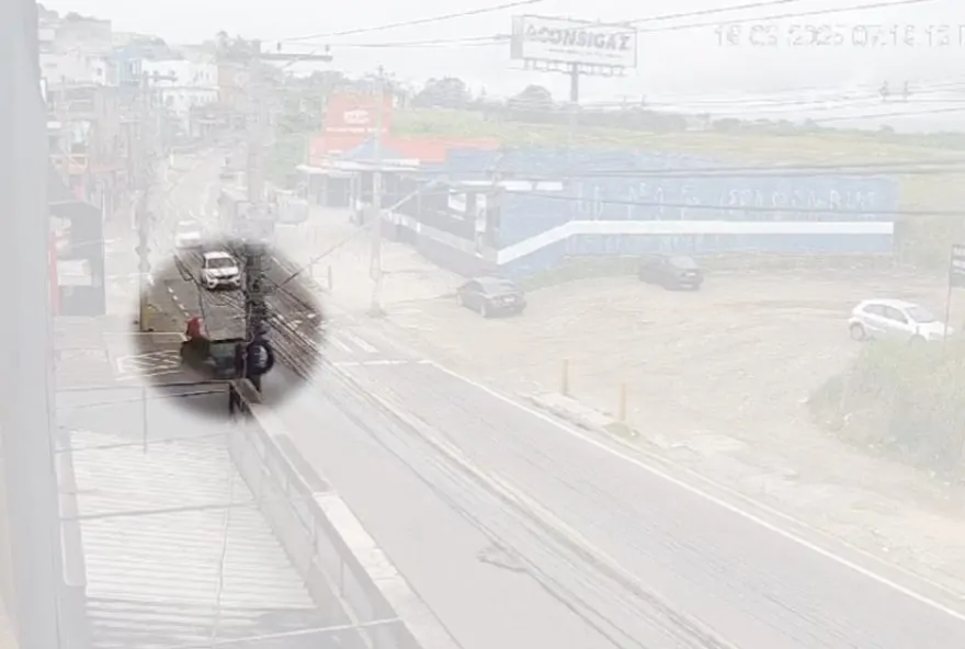 calçada e atingiu a vítima. O momento foi flagrado por uma câmera de segurança