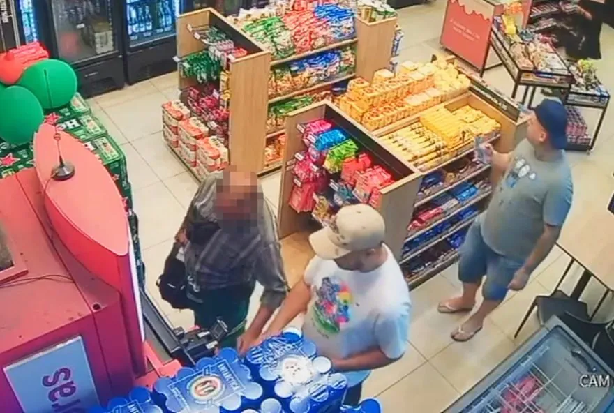 As câmeras de segurança mostram o momento em que a vítima é abordada por três suspeitos enquanto faz um saque em um caixa eletrônico em uma loja de conveniência, na Vila Industrial (assista ao vídeo acima).