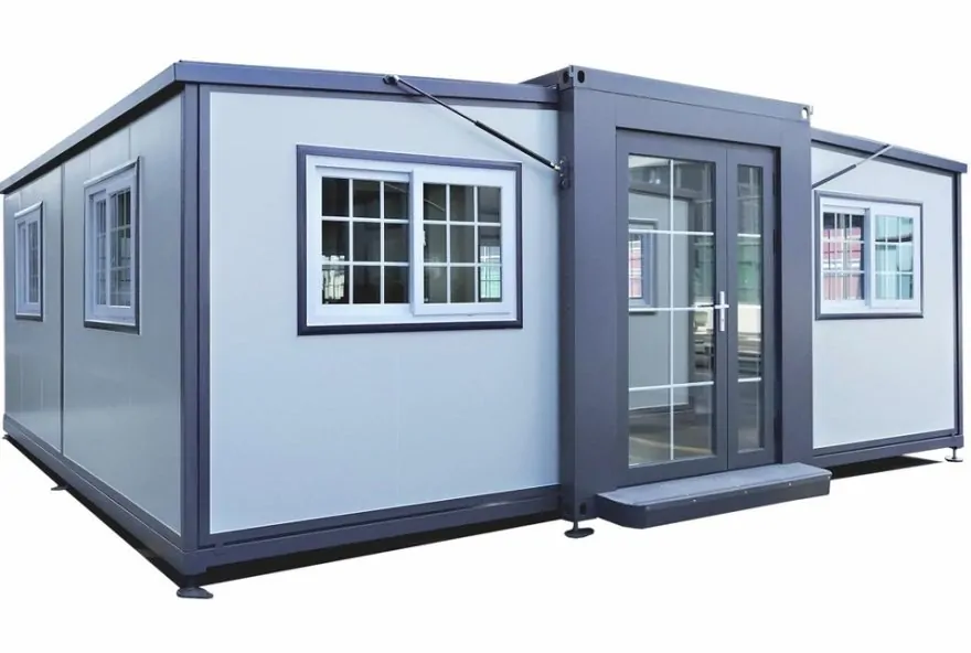 O “imóvel” compacto vem com cozinha compacta, sala de estar, quarto e banheiro – com vaso sanitário e chuveiro pré-instalados.
