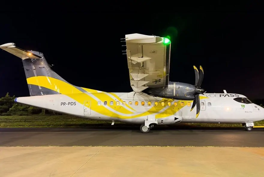 Avião ATR-72 da Voepass, antiga Passaredo Linhas Aéreas, em Ribeirão Preto, SP — Foto: Divulgação