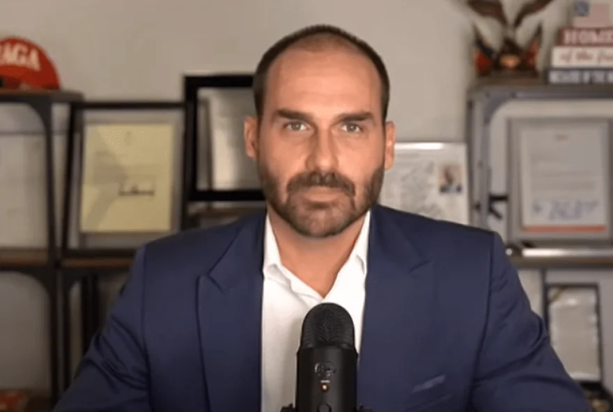 Eduardo Bolsonaro é réu em uma ação penal por coação no curso do processo, relacionada a sua atuação nos Estados Unidos. Ele é investigado por supostas tentativas de interferência dos EUA na política interna brasileira. Até mesmo aliados do ex-deputado reconhecem que a manutenção do cargo na PF parece cada vez mais remota, devido à impossibilidade de retornar ao Brasil a curto prazo, o que torna praticamente inevitável a perda do cargo.