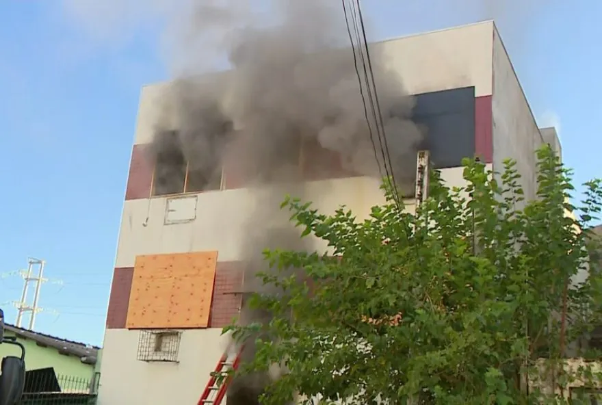 No pavimento superior, uma densa coluna de fumaça se formou. O segundo andar está com tapumes nas janelas. No térreo, as estruturas estão concretadas. Não havia ninguém no local. O local foi isolado para trabalhos das equipes. Brigada Militar (BM) e Defesa Civil prestam apoio às guarnições dos bombeiros.